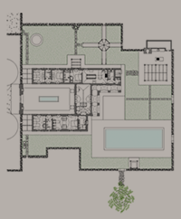 A pair of monumental wooden gates lead into a Moorish style, paved internal courtyard with a large central fountain. The living and sleeping areas of Masseria la Spinetta are all on one floor and the living room lies straight ahead through large arched glass doors. To either side are the two self contained sleeping wings, both suitable for a family. On the right is found the master bedroom wing with double bedroom and large ensuite featuring a deep copper free standing bath. This connects to a dressing room with daybeds designed as additional sleeping for larger families. Both rooms have ample fitted storage and the dressing room has a large TV and DVD player. Beyond the dressing room lies a further bedroom with twin beds, a desk and fitted cupboards. This has its own shower room, finished, as indeed are all the bathrooms, in the same cool polished plaster.